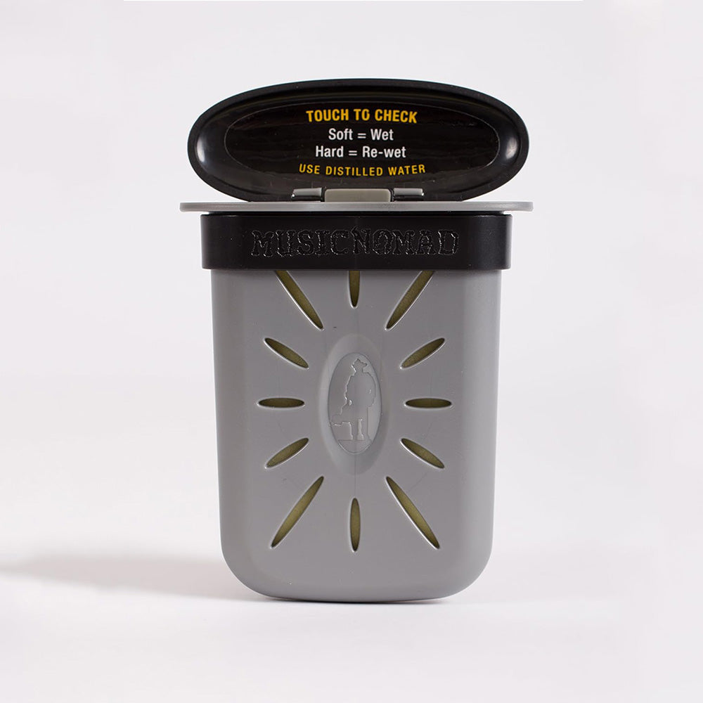 El Case Humitar de Music Nomad es prácticamente el mismo Humidificator Humitar, uno de los favoritos de todos los guitarristas por 3 sencillas razones: Es fácil de usar, es barato y su esponja de microporos absorbe hasta 3 veces más agua que las esponjas de otros humidificadores. La única diferencia entre este es que viene un clip para sujetarse en el estuche y la opción de usar velcro para lo mismo.