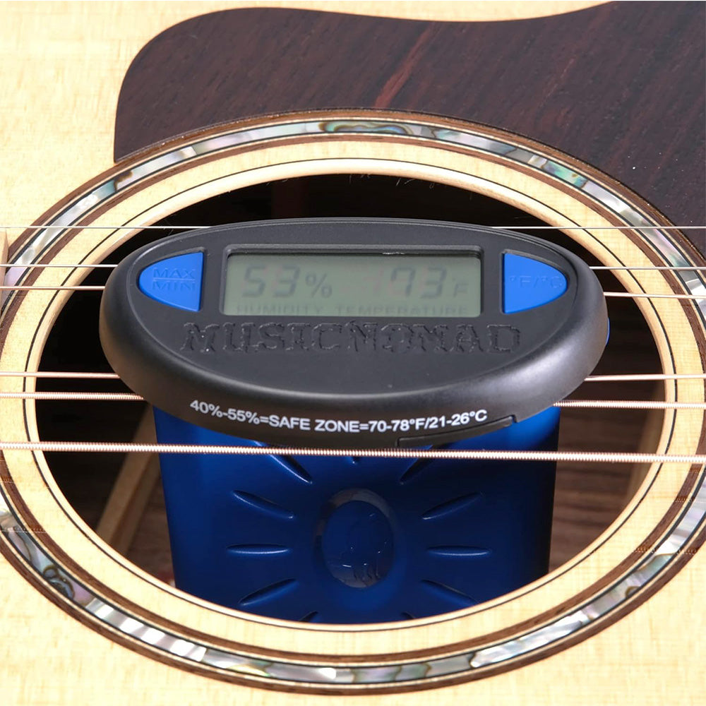 Deja de adivinar si tu guitarra está cómoda y sonando al máximo con este combo que te dirá rápidamente si está muy seca, muy húmeda o en el punto justo...